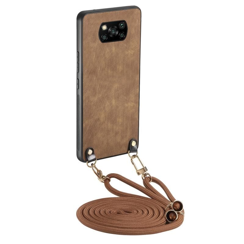 Για Xiaomi Poco X3 NFC εκλεκτής ποιότητας δέρμα PC πίσω κάλυμμα τηλέφωνο υπόθεση με λουράκι σταυρού (καφέ)