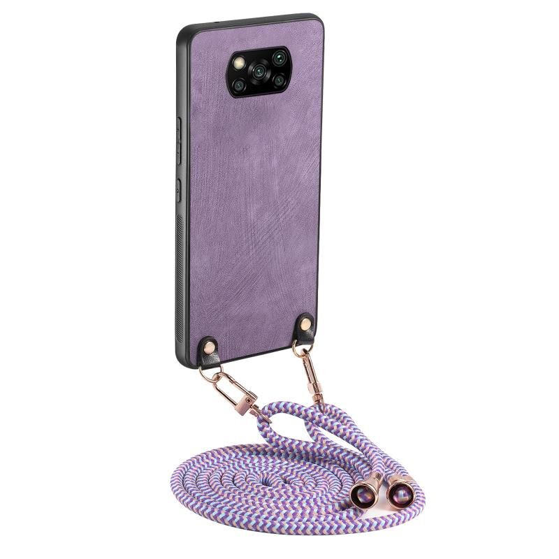 Για Xiaomi Poco X3 NFC εκλεκτής ποιότητας δέρμα PC πίσω κάλυμμα τηλέφωνο υπόθεση με λουράκι σταυρού (μωβ)