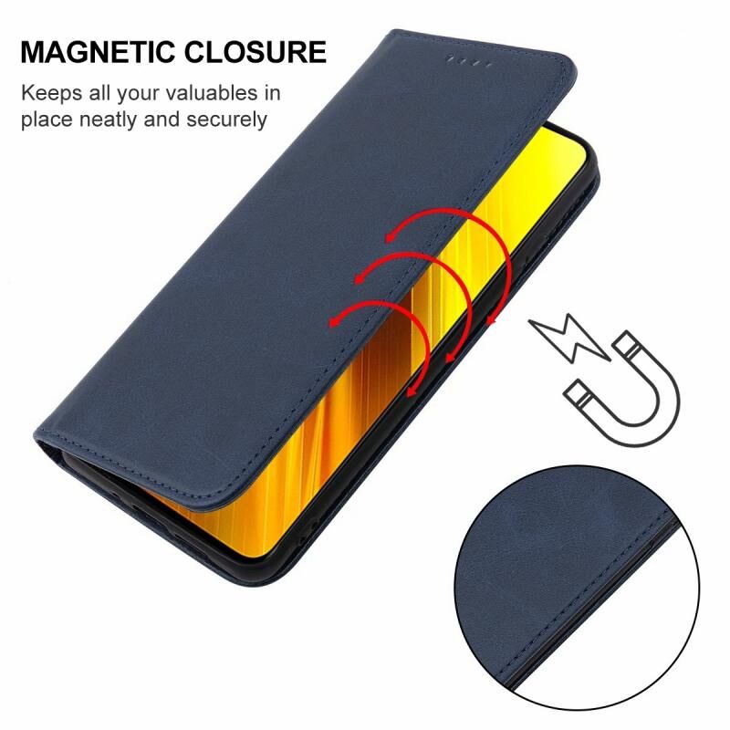 Για Xiaomi Poco X3 NFC / X3 / X3 Pro Μαγνητικό κλείσιμο δερμάτινη θήκη τηλεφώνου (μπλε)