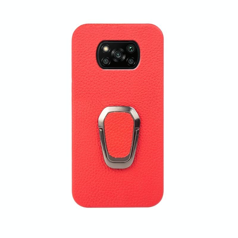 Θήκη τηλεφώνου από γνήσιο δέρμα με υφή λύτσι και δακτύλιο στήριξης για Xiaomi Poco X3 Pro / Poco X3 / X3 NFC (Κόκκινο)