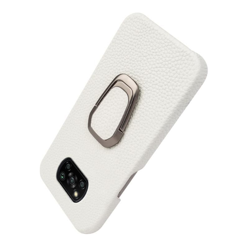 Θήκη τηλεφώνου από γνήσιο δέρμα με υφή λύτσι και δακτύλιο στήριξης για Xiaomi Poco X3 Pro / Poco X3 / X3 NFC (Λευκό)