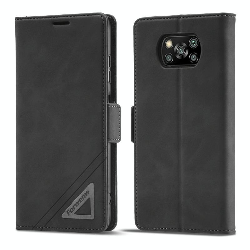 Για Xiaomi Poco X3 Pro / X3 / X3 NFC Forwenw Διπλής όψης πόρπη Δερμάτινη θήκη τηλεφώνου (μαύρο) (Μαύρο)