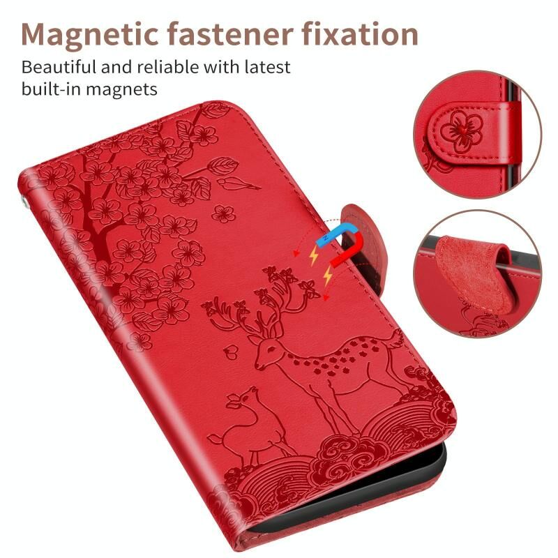 Για Xiaomi Poco X3 Sika Deer ανάγλυφο μοτίβο οριζόντια Flip PU δερμάτινη θήκη με κάτοχο & υποδοχή κάρτας & πορτοφόλι & πλαίσιο φωτογραφιών (κόκκινο)