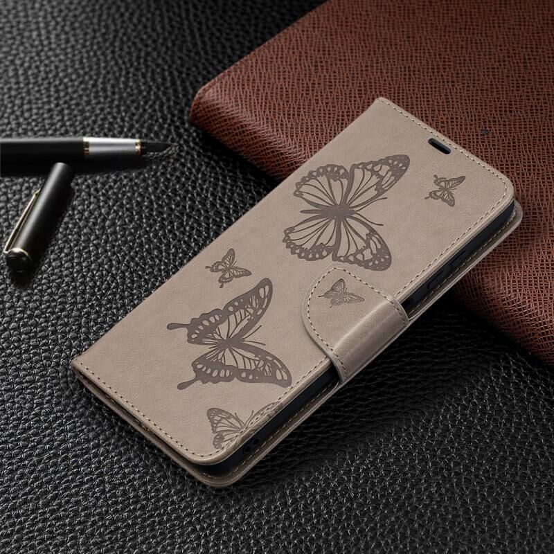 Θήκη δέρματος οριζόντιας αναδίπλωσης για Xiaomi Poco X3 με ανάγλυφο σχέδιο δύο πεταλούδων, με βάση στήριξης, θήκη για κάρτες, πορτοφόλι και λουρί (Χρυσό Ρόδινο).