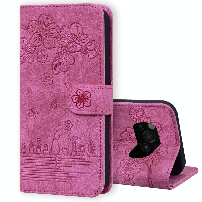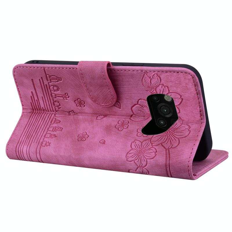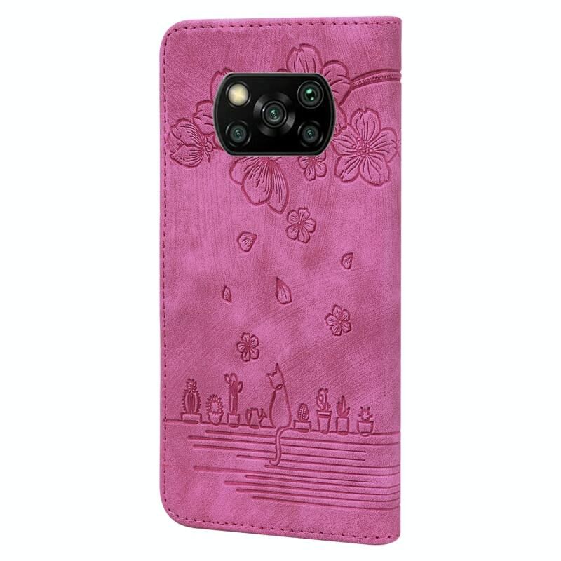 Θήκη δερμάτινη με σχέδιο Sakura Cat για Xiaomi Poco X3 / X3 NFC (Ροζ Κόκκινο)