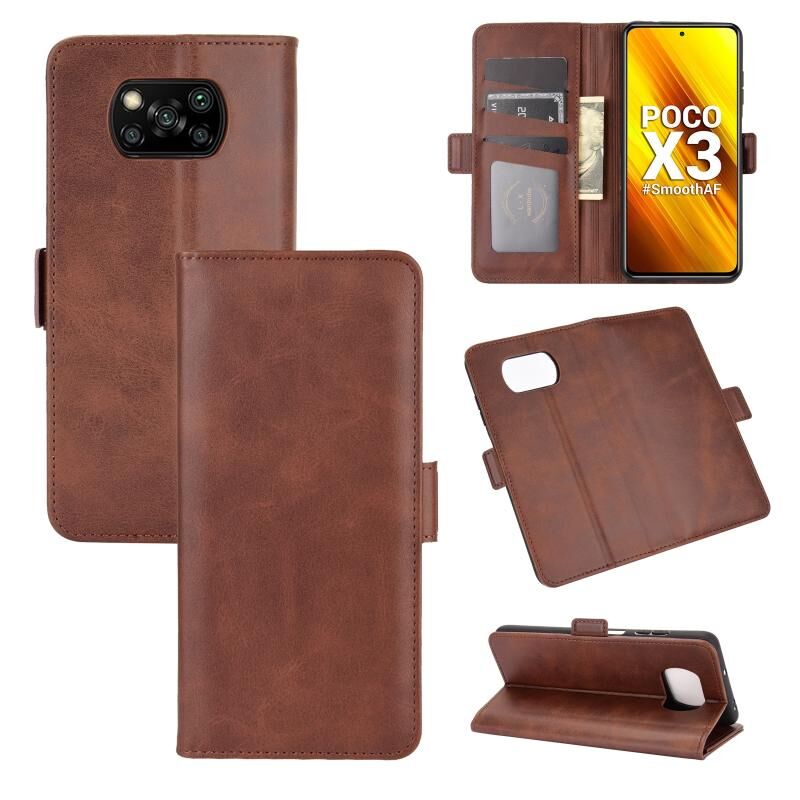 Θήκη δερμάτινη τύπου βιβλιαρίου με μαγνητικό κούμπωμα διπλής όψης για Xiaomi Poco X3/X3 NFC, με βάση στήριξης, θήκες για κάρτες και πορτοφόλι (Καφέ)