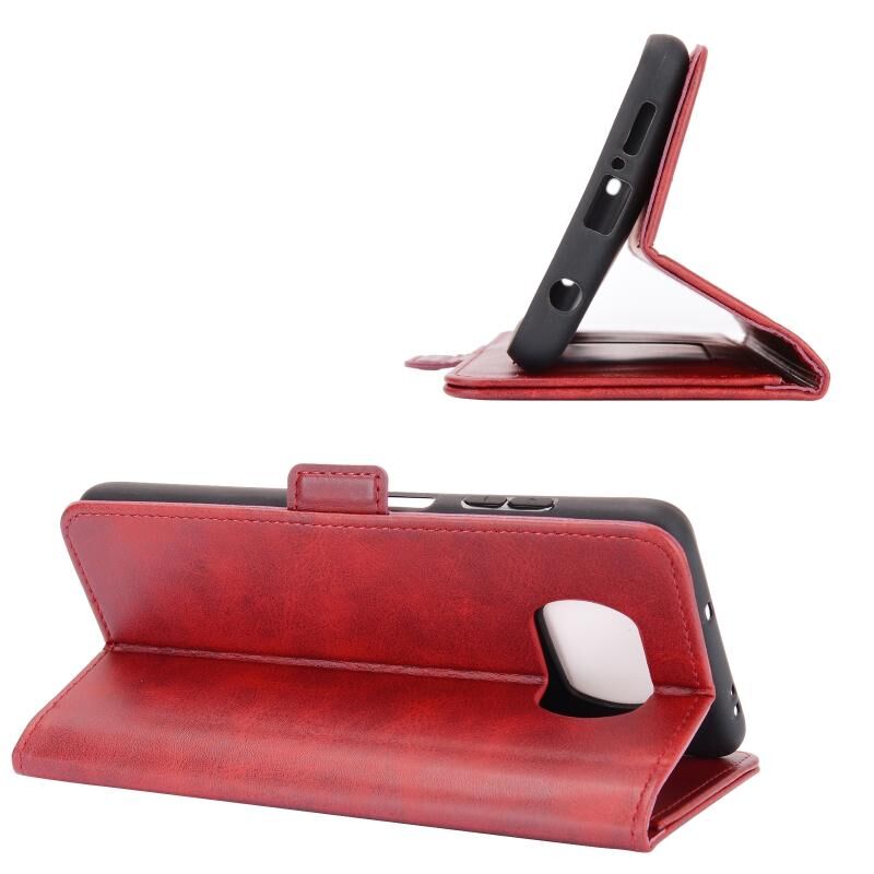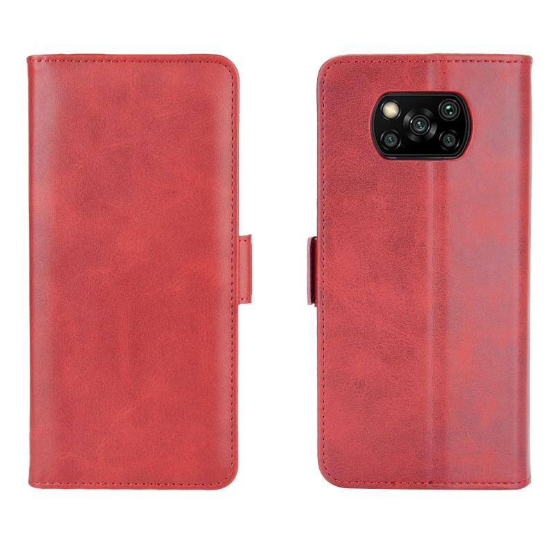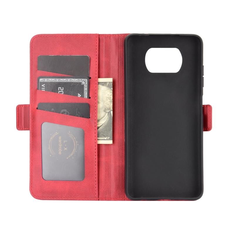 Θήκη τύπου βιβλιαρίου από δέρμα για Xiaomi Poco X3/X3 NFC με διπλό μαγνητικό κούμπωμα, οριζόντια θέση, βάση στήριξης, θήκες για κάρτες και πορτοφόλι (Κόκκινο)