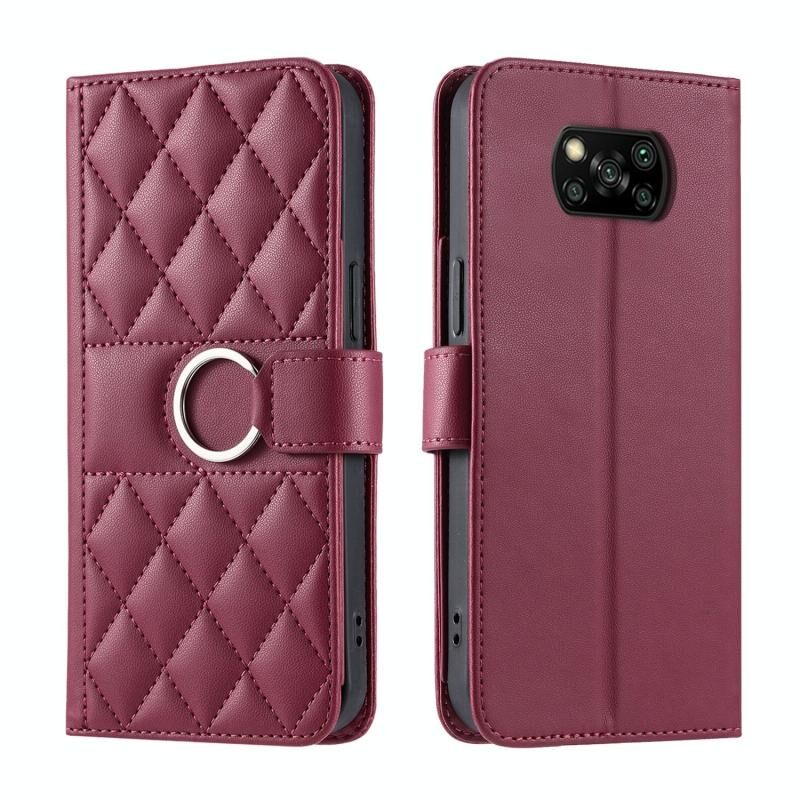 Για Xiaomi Poco X3 / X3 NFC / X3 Pro Δαχτυλίδι πόρπη ρομβοειδής δερμάτινη θήκη τηλεφώνου (Κόκκινο)