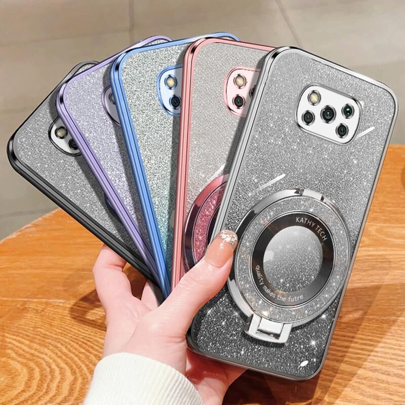 Για Xiaomi Poco X3 / X3 Pro Επιμεταλλωμένη βαθμιδωτή Glitter στρογγυλή θήκη τηλεφώνου TPU κατόχου (μωβ)