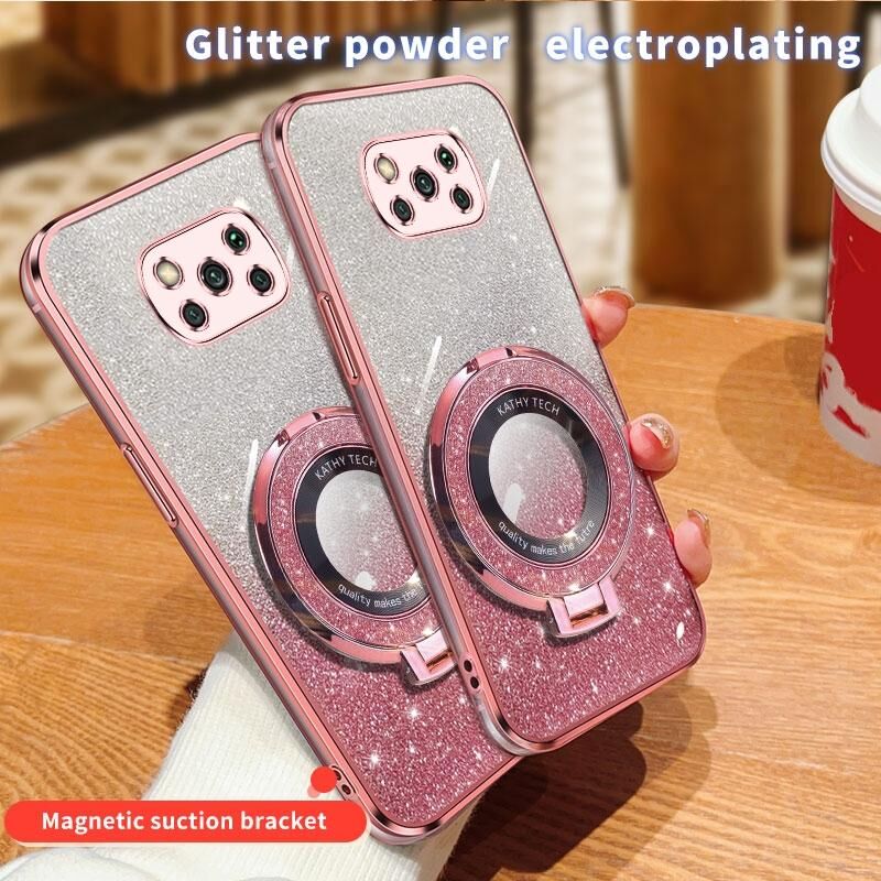 Για Xiaomi Poco X3 / X3 Pro Επιμεταλλωμένη βαθμιδωτή Glitter στρογγυλή θήκη τηλεφώνου TPU κατόχου (Sierra Blue)