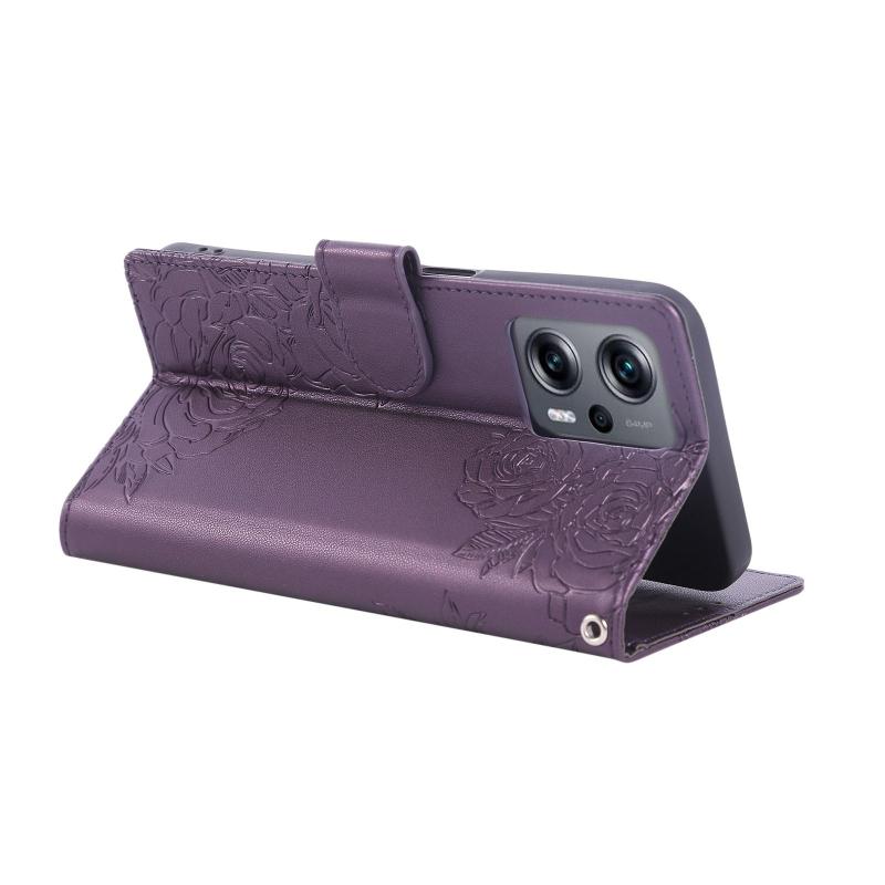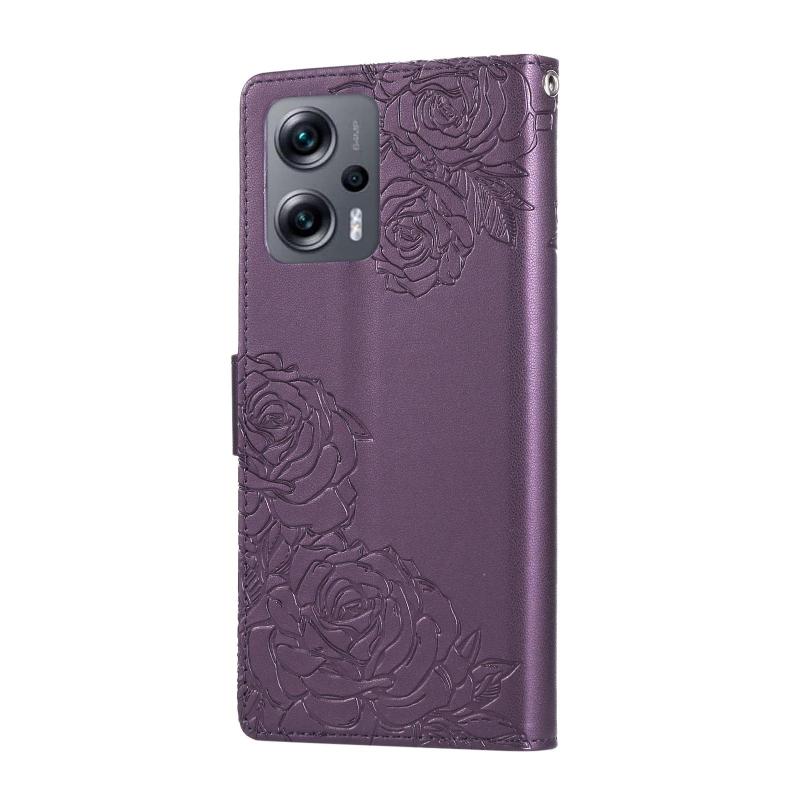 For Xiaomi Poco X4 GT Rose Flower Embossed 3-Card Slots Leather Phone Case(Deep Purple)