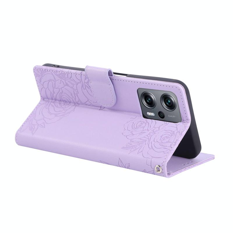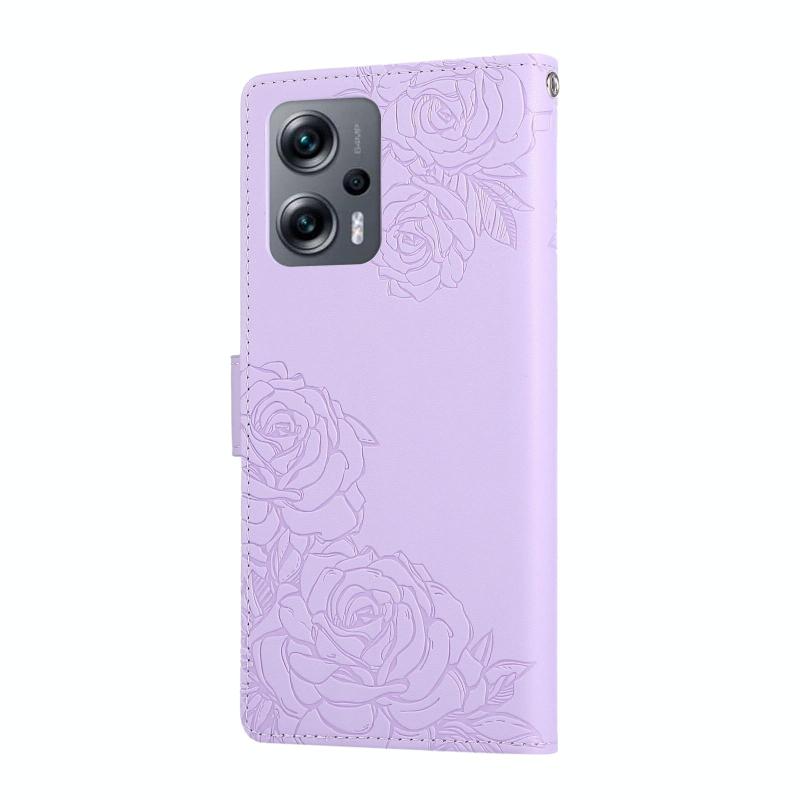 For Xiaomi Poco X4 GT Rose Flower Embossed 3-Card Slots Leather Phone Case(Purple)