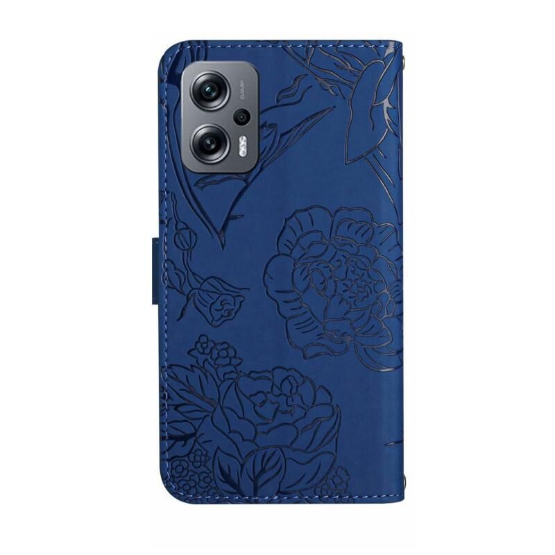 Θήκη τηλεφώνου Xiaomi Poco X4 GT με υφή δέρματος, ανάγλυφο σχέδιο πεταλούδας και παιώνιας (Μαύρο)