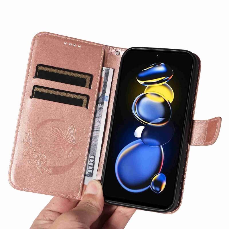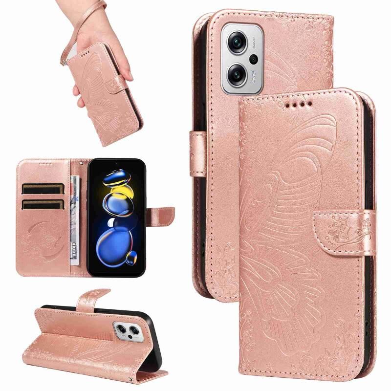 Θήκη τηλεφώνου από δέρμα με ανάγλυφο σχέδιο πεταλούδας Swallowtail για Xiaomi Poco X4 GT (Μπλε)