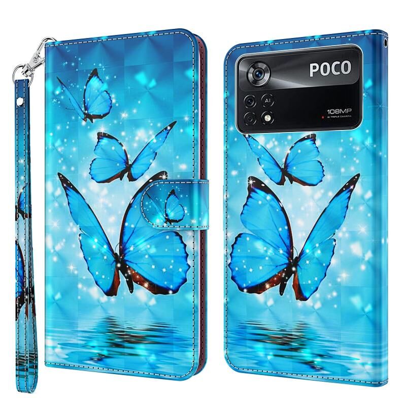 Θήκη τηλεφώνου για Xiaomi Poco X4 Pro 5G, TPU + Δερμάτινη PU, με τρισδιάστατο σχέδιο (Τρεις Πεταλούδες)