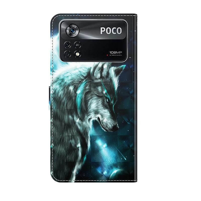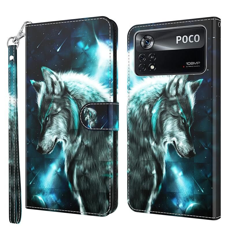 Θήκη κινητού τηλεφώνου για Xiaomi Poco X4 Pro 5G, TPU + Δερμάτινη PU, με σχέδιο 3D ζωγραφικής (Λύκος)