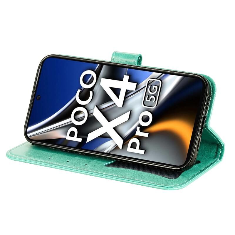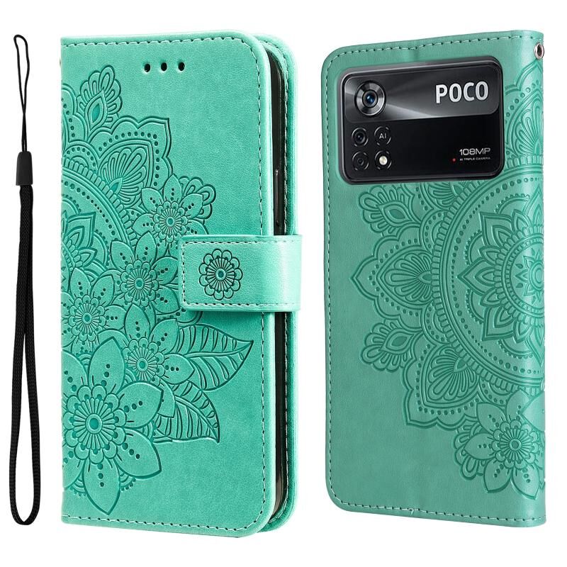 Θήκη τηλεφώνου από δέρμα με ανάγλυφα λουλούδια 7 πετάλων για Xiaomi Poco X4 Pro 5G (Ανοιχτό Μωβ)