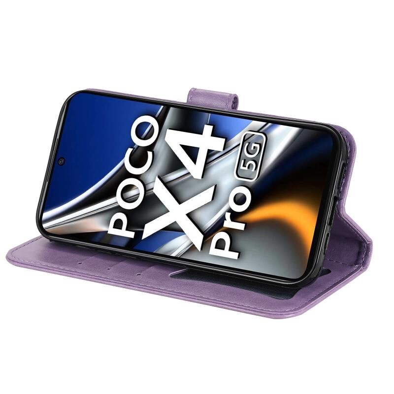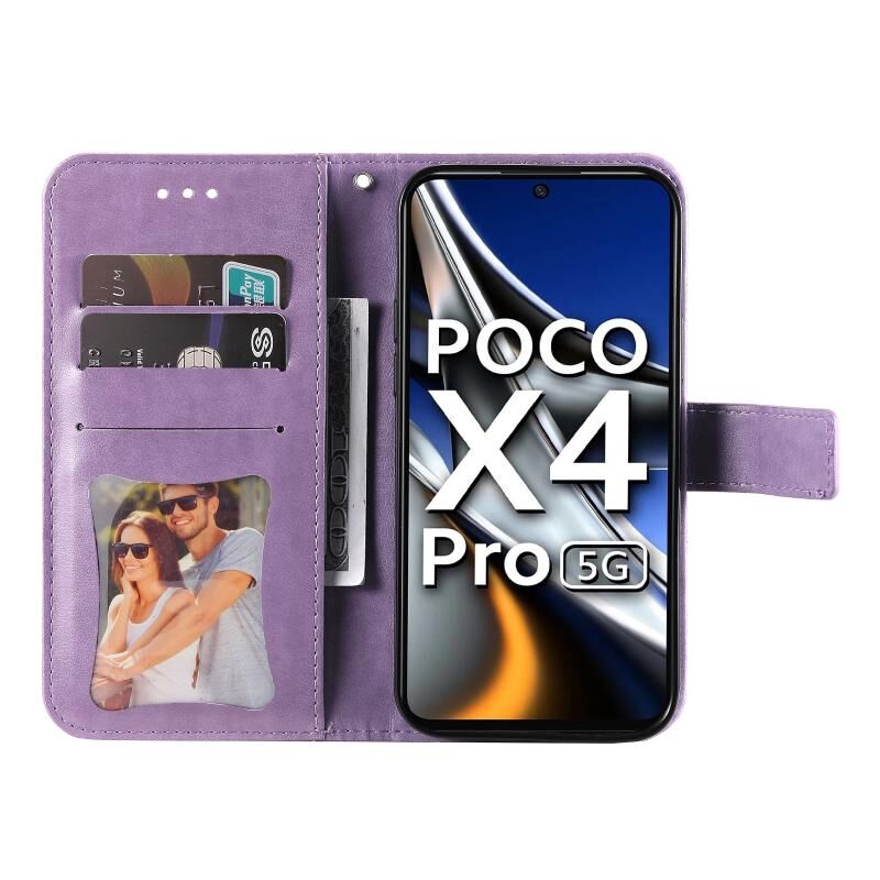 Θήκη τηλεφώνου από δέρμα με ανάγλυφα λουλούδια 7 πετάλων για Xiaomi Poco X4 Pro 5G (Ανοιχτό Μωβ)