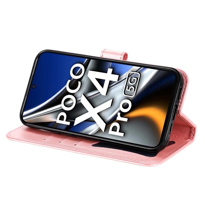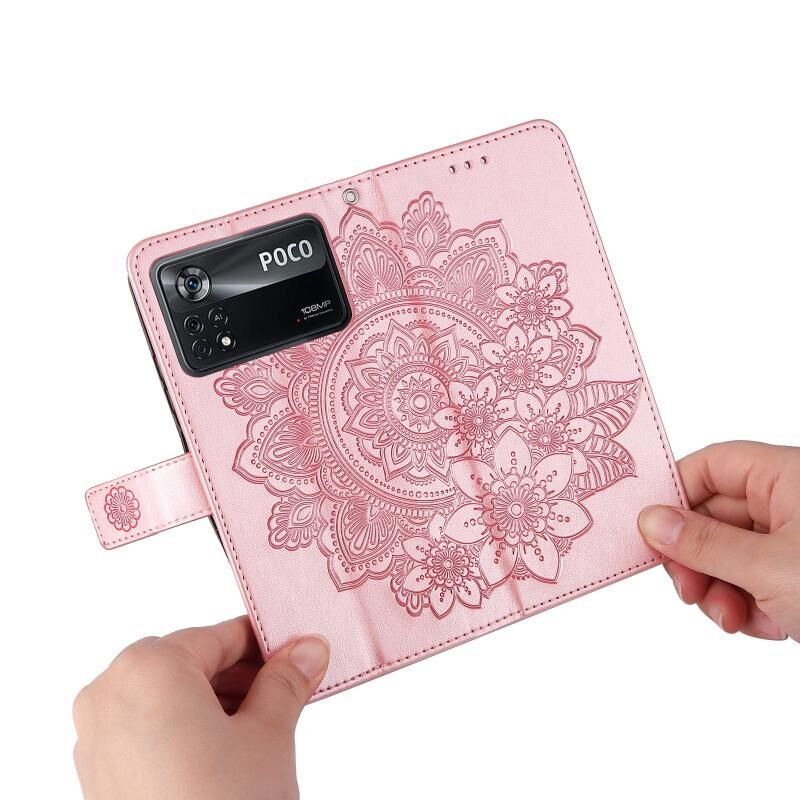 Θήκη τηλεφώνου από δέρμα με ανάγλυφα λουλούδια 7 πετάλων για Xiaomi Poco X4 Pro 5G (Ανοιχτό Μωβ)