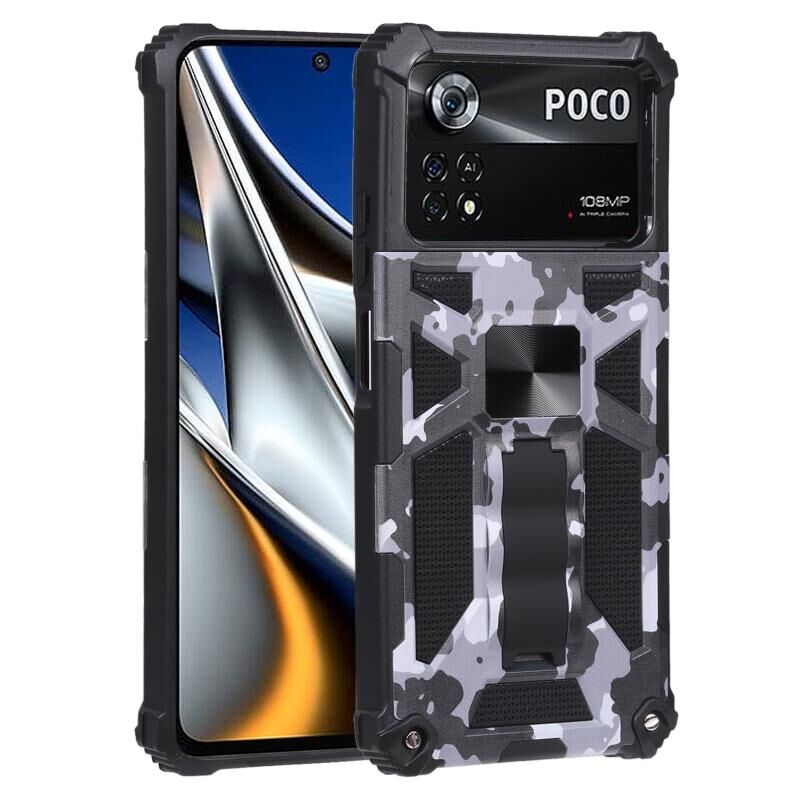 Θήκη κινητού τηλεφώνου Xiaomi Poco X4 Pro 5G, Θωρακισμένη, Καμουφλάζ, με στήριξη και μαγνητική σύνδεση (Γκρι)