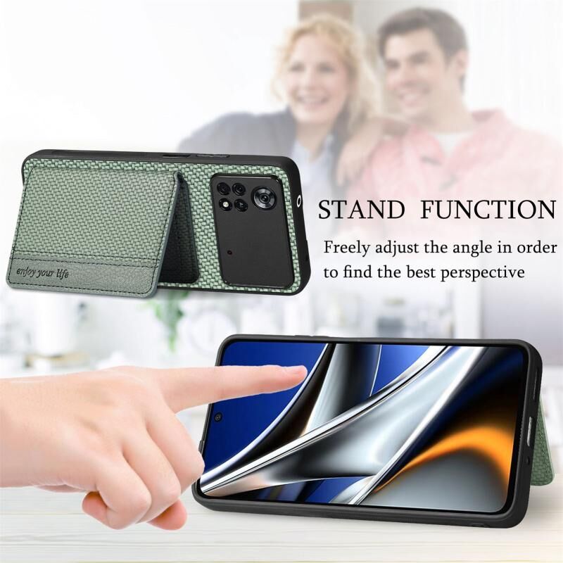 Για Xiaomi Poco X4 Pro 5G Carbon Fiber μαγνητική κάρτα πορτοφόλι τσάντα υπόθεση τηλεφώνου (χακί)
