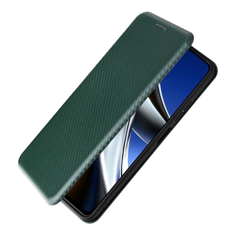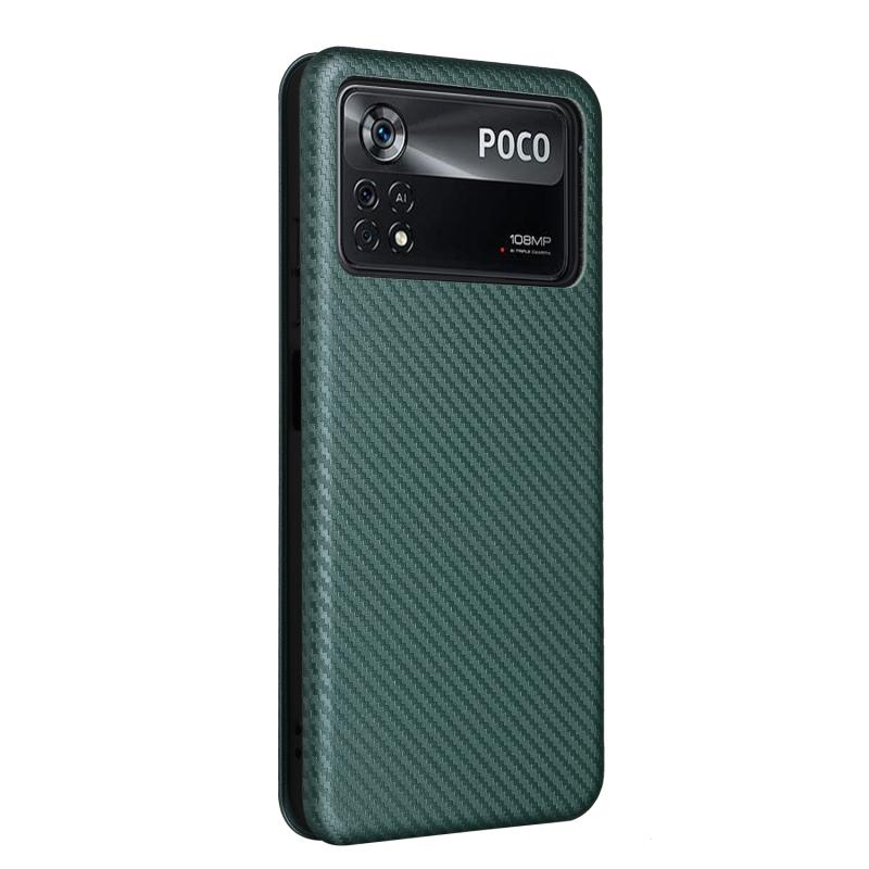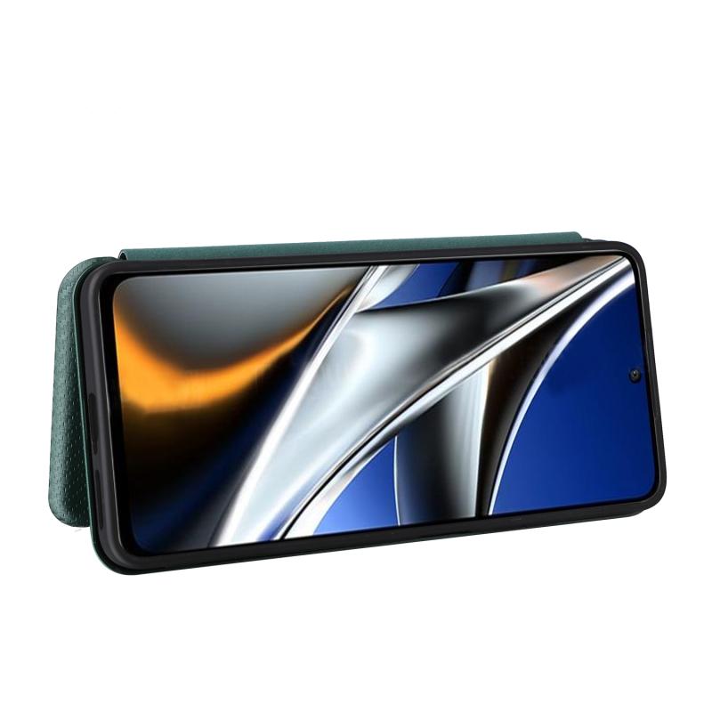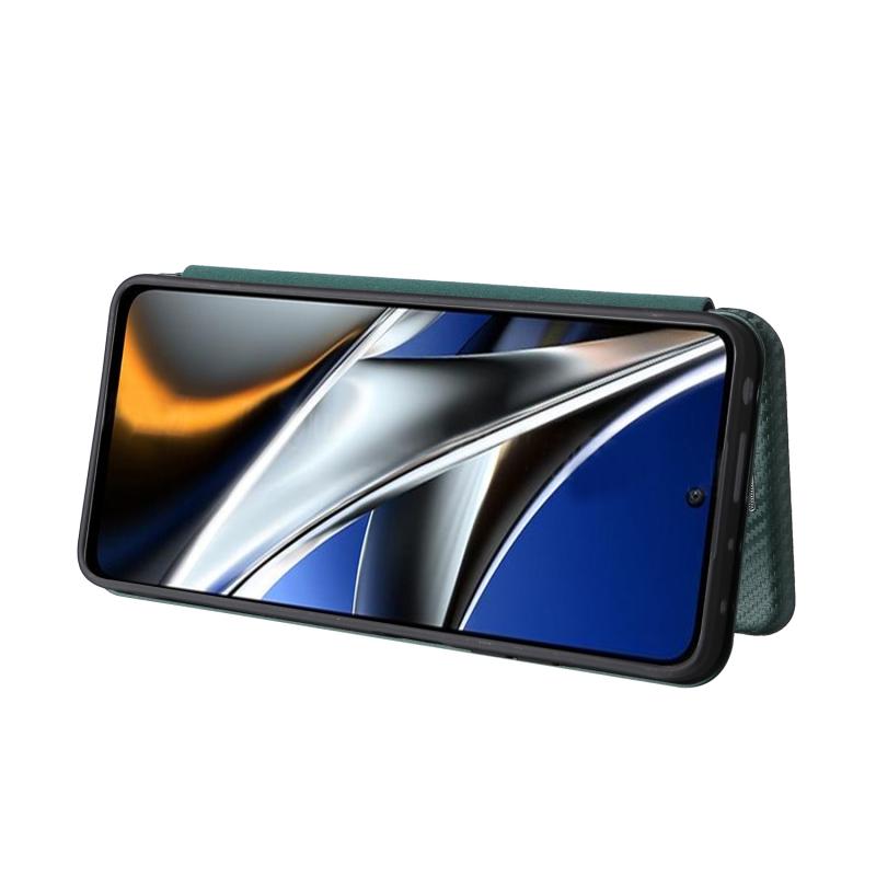 For Xiaomi Poco X4 Pro 5G Carbon Fiber Texture Horizontal Flip Leather Phone Case(Green)