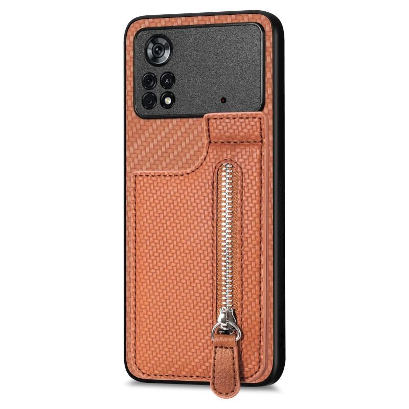 Για Xiaomi Poco X4 Pro 5G Carbon Fiber Κάθετη Flip φερμουάρ υπόθεση τηλεφώνου (καφέ)