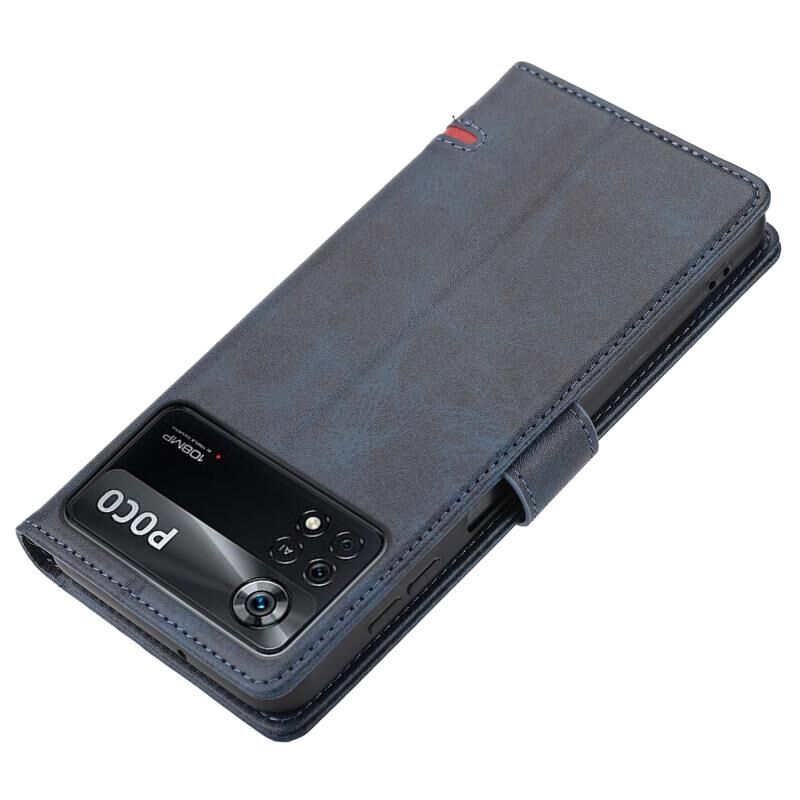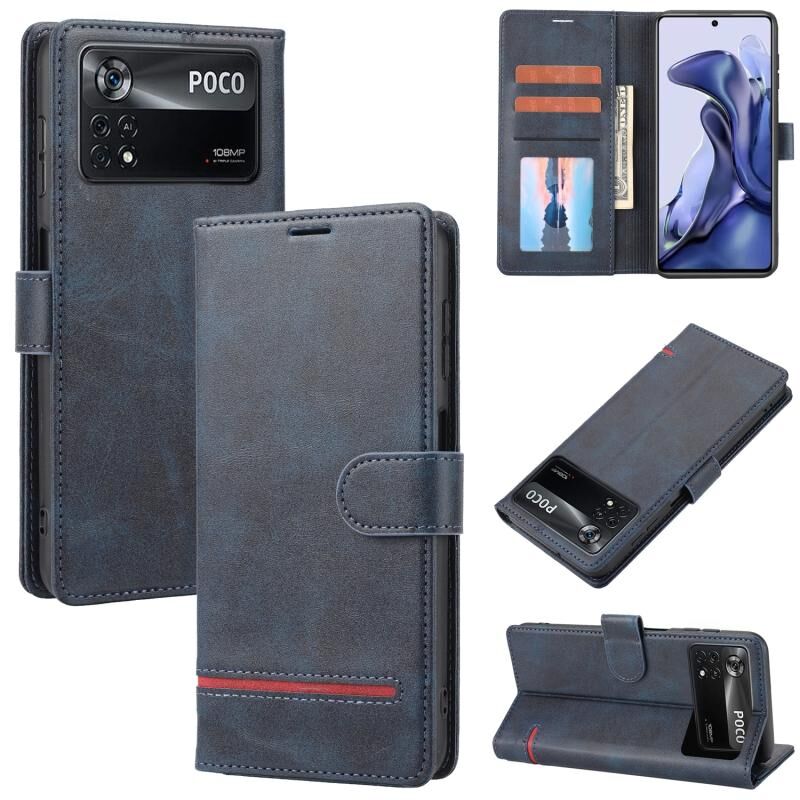 Θήκη τηλεφώνου τύπου πορτοφολιού, κλασική, δερμάτινη, για Xiaomi Poco X4 Pro 5G (Μπλε)