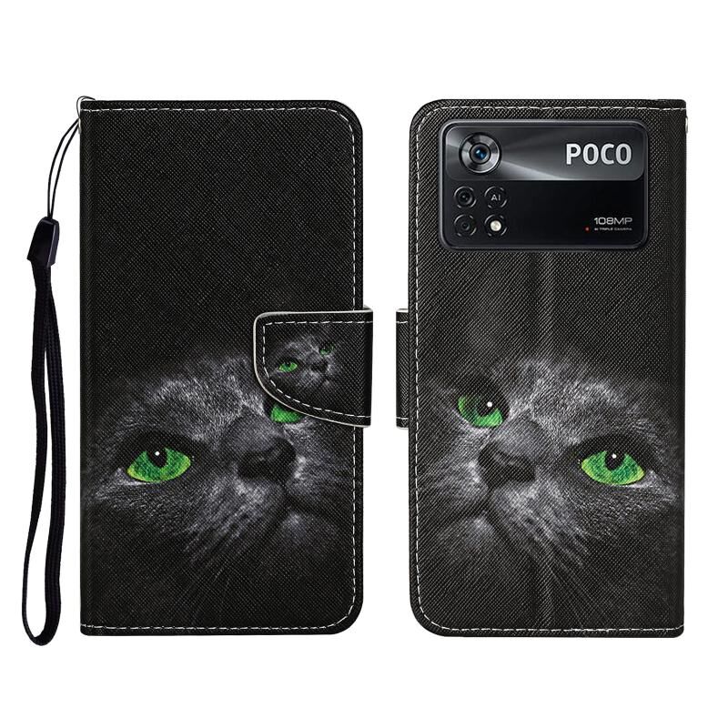 For Xiaomi Poco X4 Pro 5G Colored Drawing Pattern Flip Leather Phone Case(Black Cat)