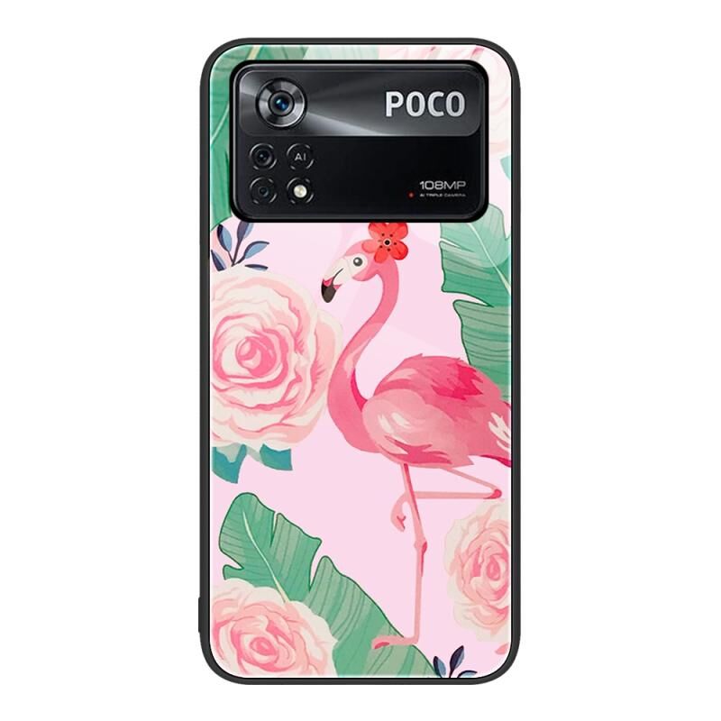 Θήκη τηλεφώνου από χρωματιστό ζωγραφιστό γυαλί για Xiaomi Poco X4 Pro 5G (Φλαμίνγκο)