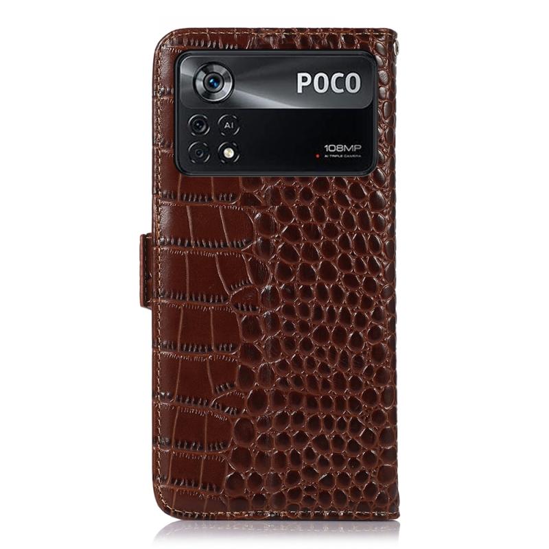 Θήκη δερμάτινη για Xiaomi Poco X4 Pro 5G από γνήσιο δέρμα κροκόδειλου (Καφέ)