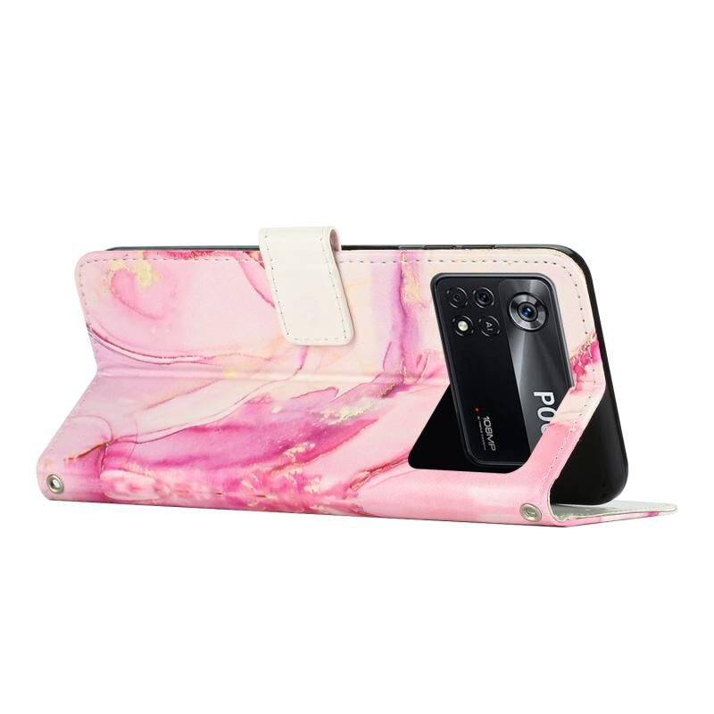 Θήκη τηλεφώνου δερμάτινη με σταυρωτό λουρί για Xiaomi Poco X4 Pro 5G, βαμμένη με σχέδιο μαρμάρου (Μωβ)