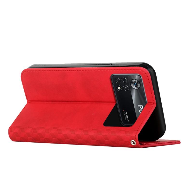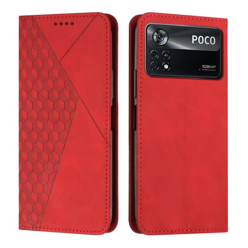 Για Xiaomi Poco X4 Pro 5G Μαγνητική Δερμάτινη Θήκη με Εφέ Διαμαντιού (Κόκκινο)