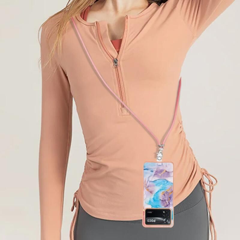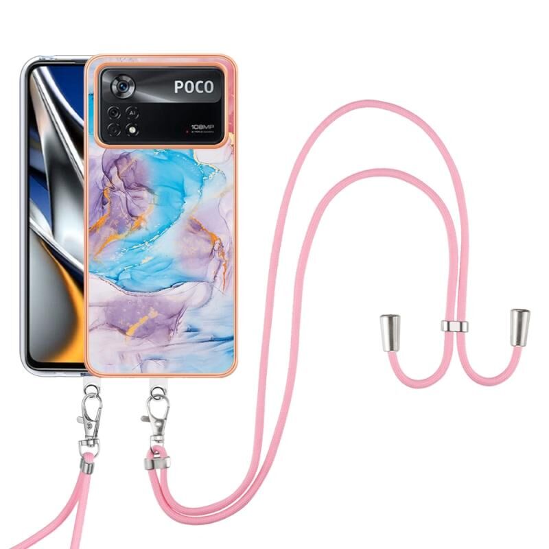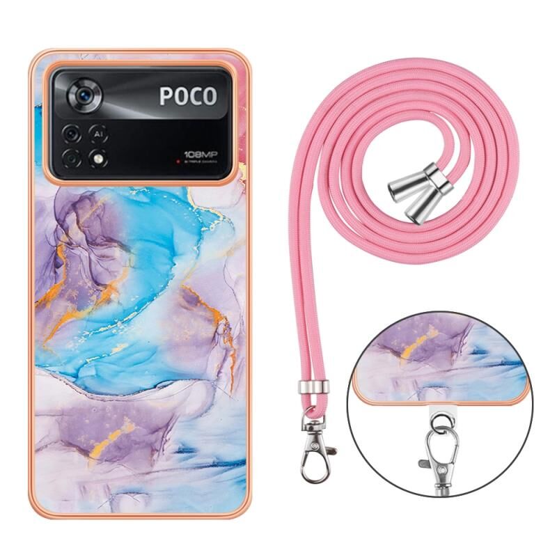 Θήκη κινητού τηλεφώνου Xiaomi Poco X4 Pro 5G με γαλβανισμό IMD TPU με κορδόνι (Ροζ Λέπια)