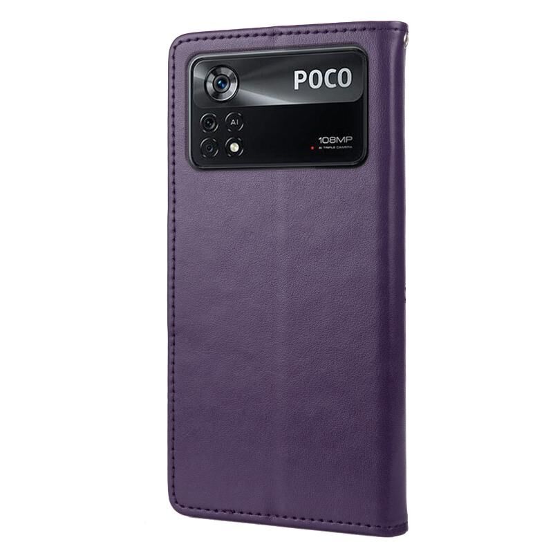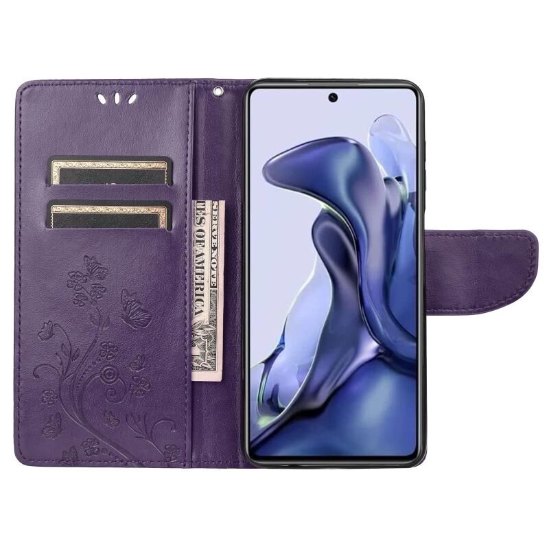 Θήκη τηλεφώνου από δέρμα με ανάγλυφο σχέδιο πεταλούδας για Xiaomi Poco X4 Pro 5G (Ανοιχτό Μωβ)