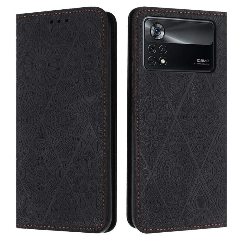 Για Xiaomi Poco X4 Pro 5G Ethnic ανάγλυφο Adsorption δερμάτινη θήκη τηλεφώνου (μαύρο)