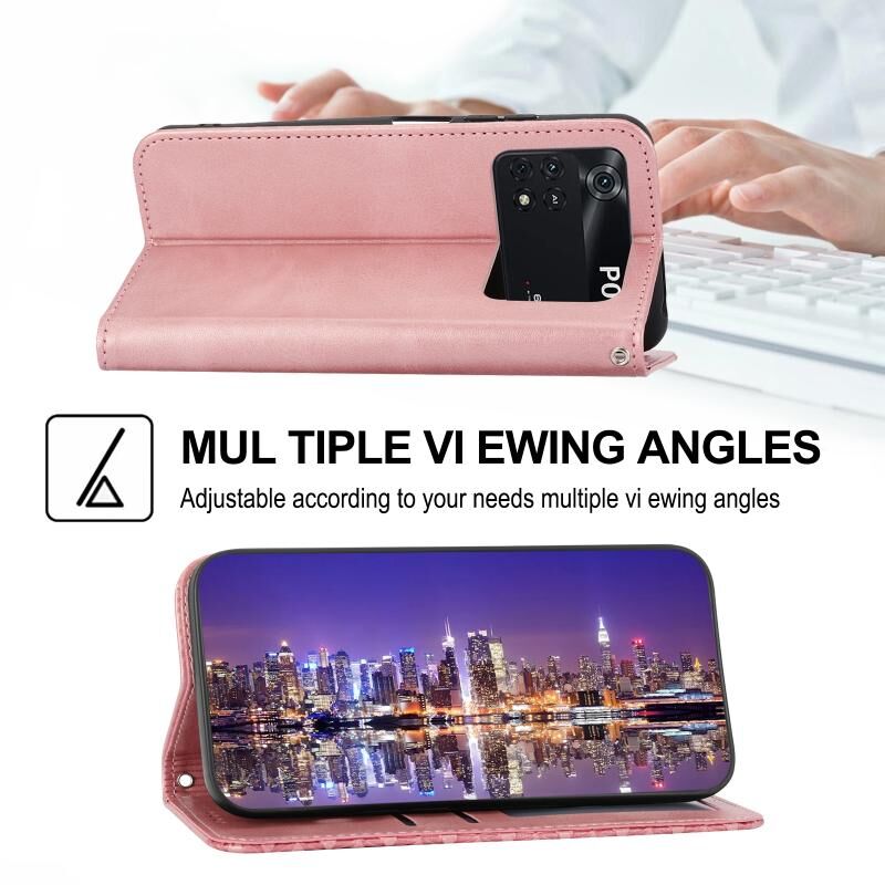 Θήκη τηλεφώνου από δέρμα με μαγνητικό κλείσιμο, υφή μοσχαρίσιου δέρματος σε κυβικό πλέγμα για Xiaomi Poco X4 Pro 5G Global (Μαύρο)