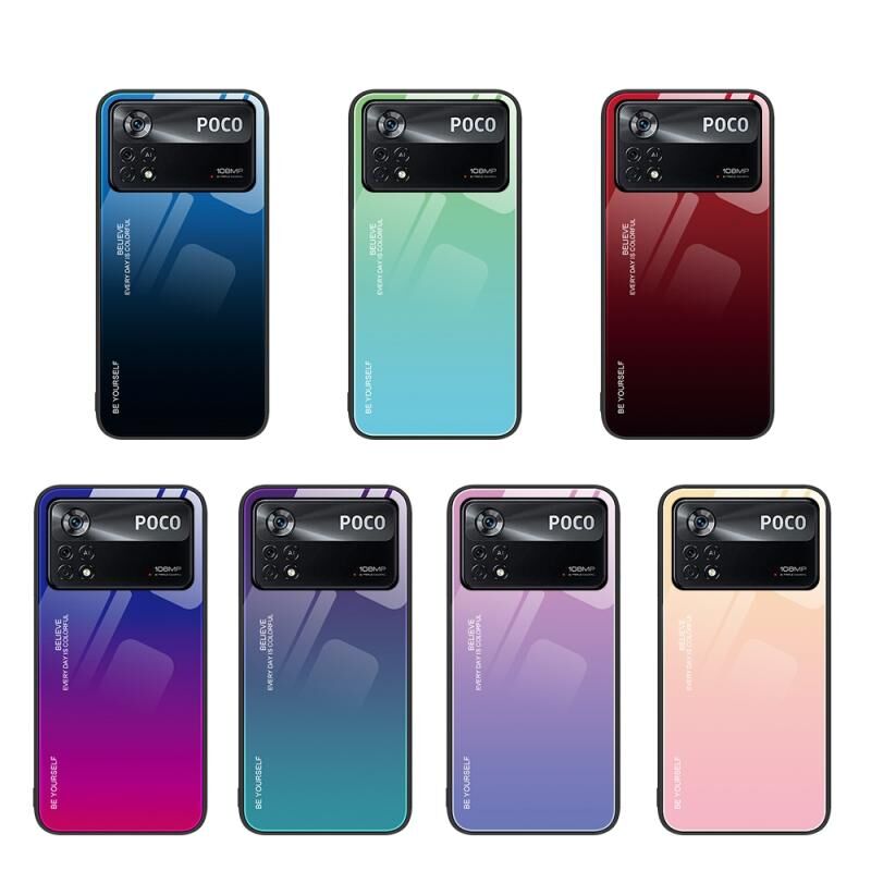 Θήκη για Xiaomi Poco X4 Pro 5G από γυαλί με διαβαθμιστικά χρώματα (Κίτρινο Ροζ)