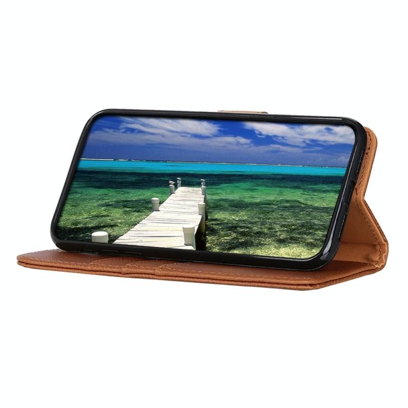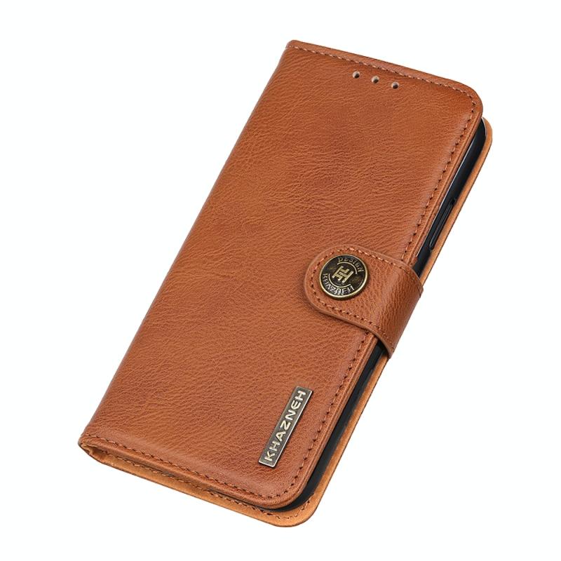 Για Xiaomi Poco X4 Pro 5G KHAZNEH Δερμάτινη Θήκη Flip με Υφή Δέρματος Μοσχαριού (Καφέ)