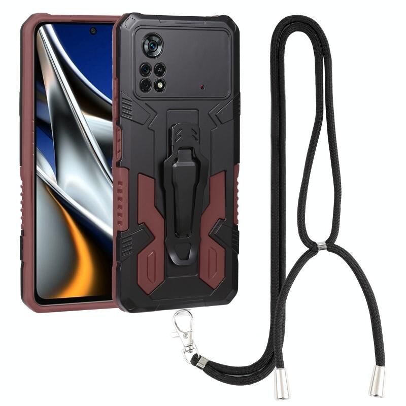 Για Xiaomi Poco X4 Pro 5G Lanyard Mecha Armor Kickstand PC + TPU τηλέφωνο υπόθεση (Καφέ)