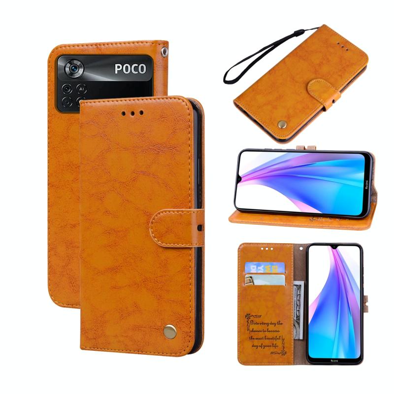 For Xiaomi Poco X4 Pro 5G Oil Wax Texture Leather Phone Case(Yellow)