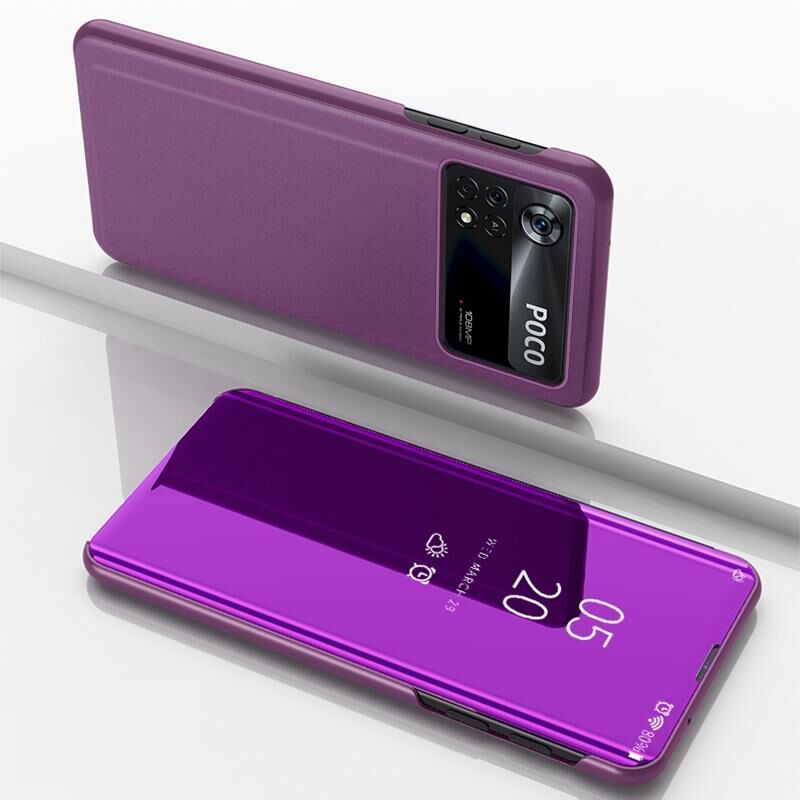 Θήκη δέρματος με καθρέφτη και οριζόντιο άνοιγμα για Xiaomi Poco X4 Pro 5G με βάση στήριξης (Μαύρο)