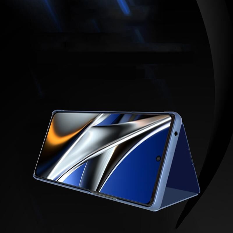 Θήκη δέρματος με καθρέφτη και οριζόντιο άνοιγμα για Xiaomi Poco X4 Pro 5G με βάση στήριξης (Μαύρο)