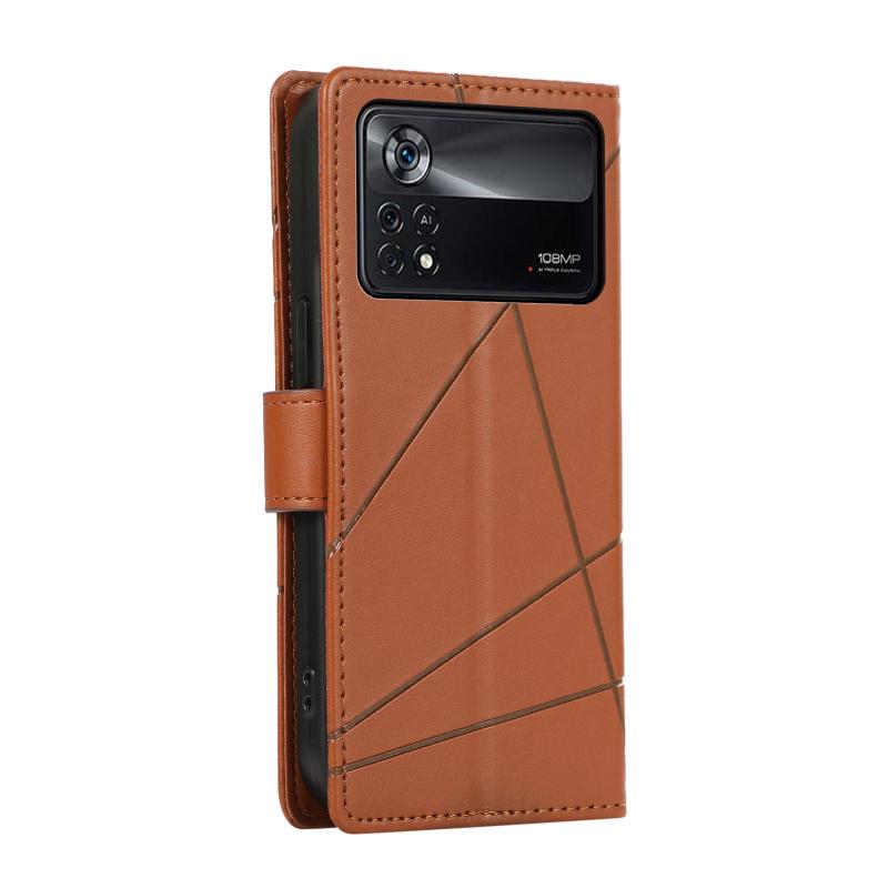 For Xiaomi Poco X4 Pro 5G PU Genuine Leather Texture Embossed Line Phone Case(Brown)