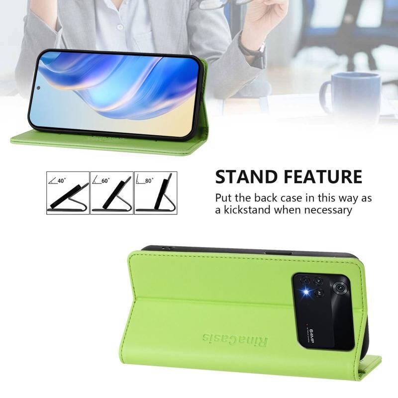 Θήκη τηλεφώνου δερμάτινη με μαγνητική απορρόφηση και διπλή πτύχωση για Xiaomi Poco X4 Pro 5G RC01 (Μέντας Πράσινο)
