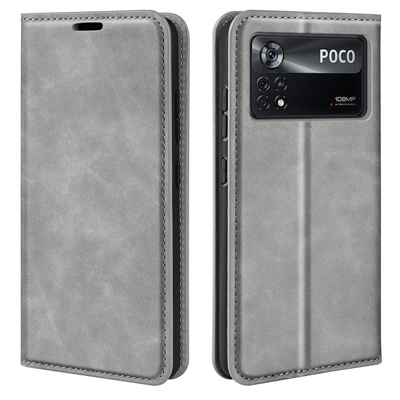 For Xiaomi Poco X4 Pro 5G Retro-skin Magnetic Suction Leather Phone Case(Grey)
