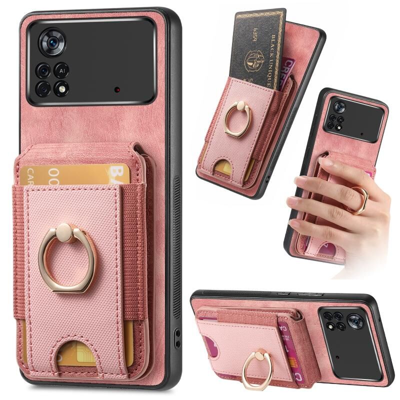 Για Xiaomi Poco X4 Pro 5G Retro Splitable Μαγνητική στάση κάρτα τσάντα τσάντα δέρμα υπόθεση τηλεφώνου (ροζ)