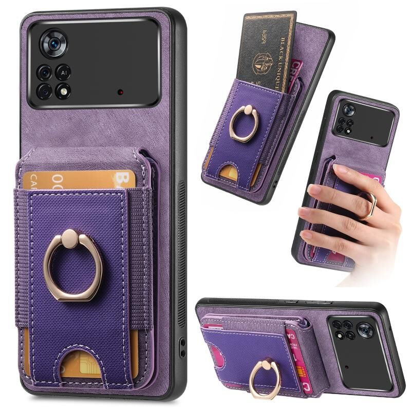 Για Xiaomi Poco X4 Pro 5G Retro Splitable Μαγνητική στάση κάρτα τσάντα τσάντα δέρμα υπόθεση τηλεφώνου (μωβ)