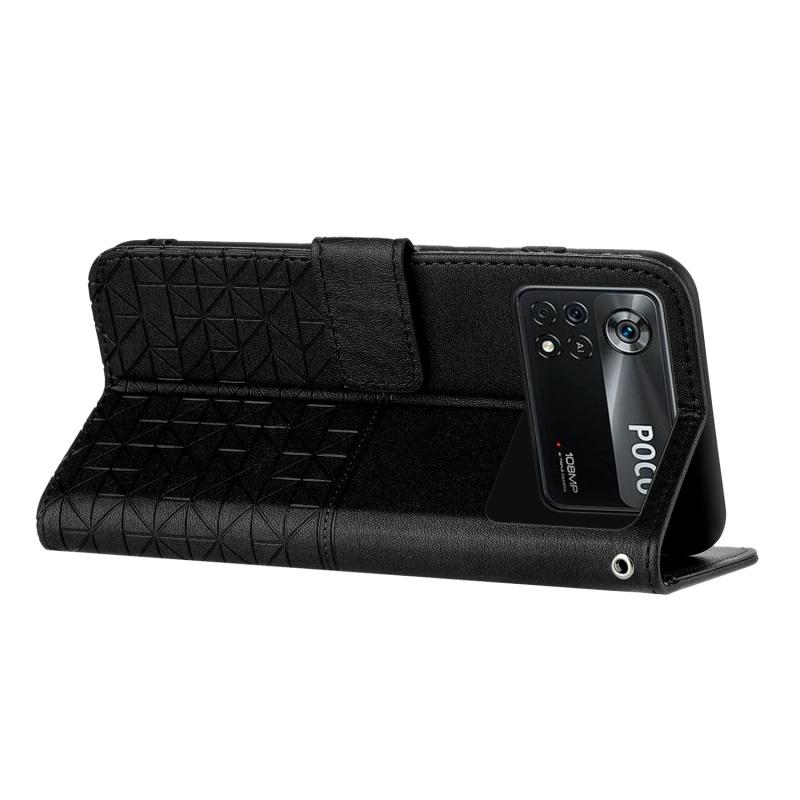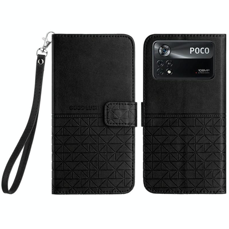 Θήκη δερμάτινη με κορδόνι για Xiaomi Poco X4 Pro 5G - Ρομβικό σχέδιο (Μαύρο)