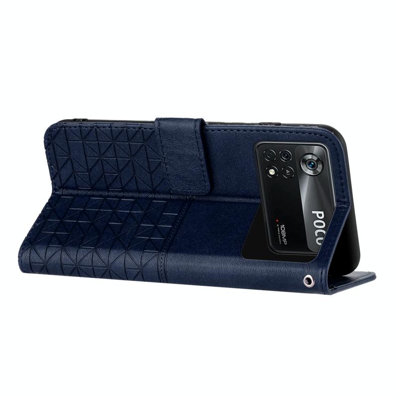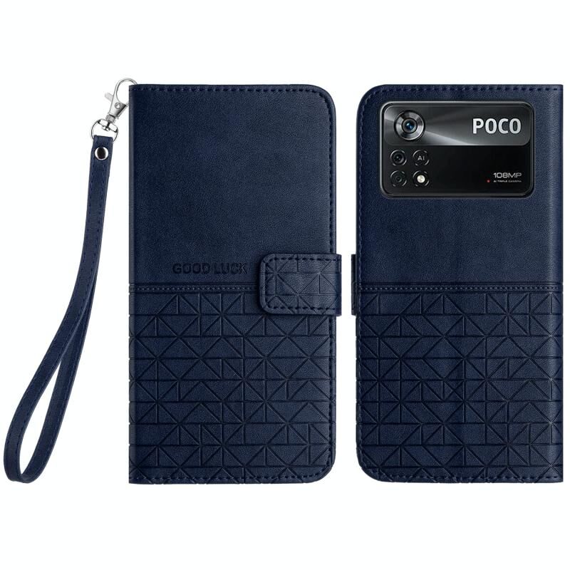 Θήκη δερμάτινη με κορδόνι για Xiaomi Poco X4 Pro 5G - Ρομβικό σχέδιο (Μπλε)